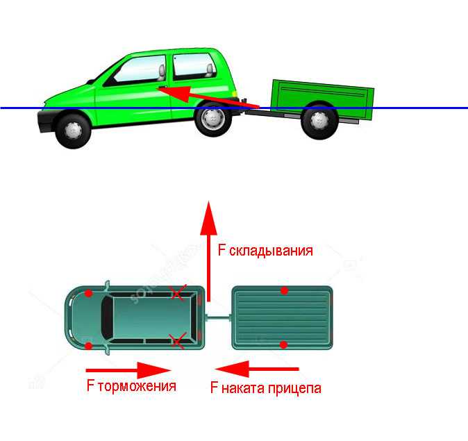 Если нагрузка на сцепной шар мала, прицеп будет раскачиваться в вертикальной плоскости. Его колебания будут поднимать заднюю часть автомобиля, ухудшая сцепление задних колес с дорогой, что может привести к заносу на скользкой или мокрой дороге и на поворотах.