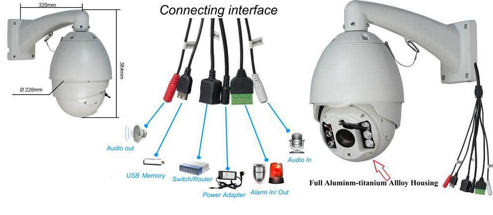 Всепогодный корпус камеры может использоваться с наружными сетевыми видеокамерами наблюдения для предотвращения ущерба, который может быть причинен дождем и пылью, а иногда и твердыми предметами, брошенными в устройство.